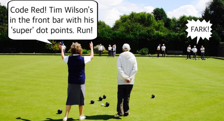 Ratio of the day There are many things one could accuse Tim “Freedom Boy” Wilson of, but lacking the fortitude to keep posting no matter what isn’t one of them. Continuing his anti-compulsory-super campaign — which we concede might not be the non-starter many on the left assume — Wilson is accruing a fabulous ratioing for his assertion that it was “Wonderful to be at the local bowls club and be told: ‘I’m a Labor man, but you’re right about super — it should be home first, super second.’ If only Labor stopped protecting their faceless fund manager mates & got in touch with their Aussies they’d back.” (sic)