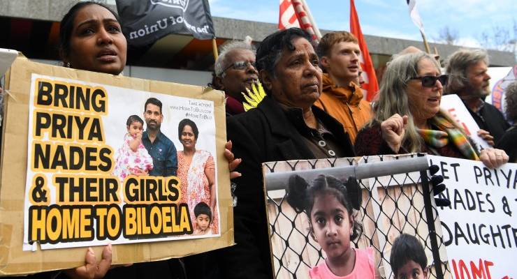 Priya and Nades both separately fled Sri Lanka’s brutal civil war and met in 2014 while on bridging visas in Australia. They had two girls, Kopika and Tharunicaa, while living in the central Queensland town of Biloela. After their visas expired, they were taken from their home in a dawn raid in 2018 and placed in immigration detention in Melbourne.