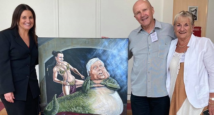 Out on a Lambie Tasmanian Senator Jacqui Lambie has revealed the extremely on-brand portrait that hangs on her wall: a six-year-old Bald Archy entrant that depicts her as Princess Leia choking to death Jabba the Hut with Clive Palmer’s face, thus living out what we can only assume is something Bill Shorten semi-regularly daydreams about.