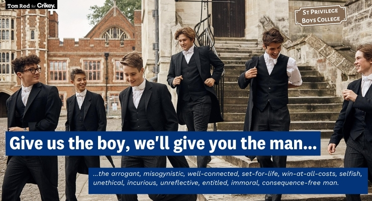 The single sex structure of schools is archaic – and you can’t discuss single sex male schools without acknowledging that single sex female schools suffer from an idealised view of males – having experienced school systems in Europe and the US returning to the NSW school system was like going back 50 years… single sex, outdated curricula, and conversations about private schools as though its some legacy of supremacy… just horrid.