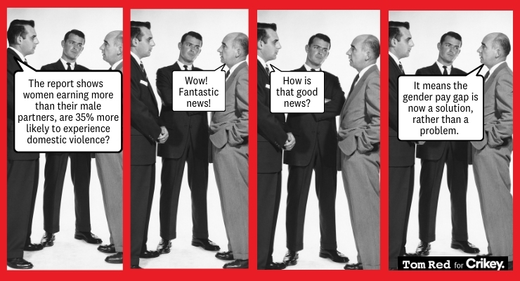 It may come as a surprise to some in the government, but women don’t exist in a vacuum. Childcare is an issue for parents, not women. Workplace sexual harassment is an issue for employees and companies, not women. Sexual violence is an issue for society, not women. As a new report shows, even women’s salaries are not only an issue for women: domestic violence risk increases by 35% when women start earning more than their partners.