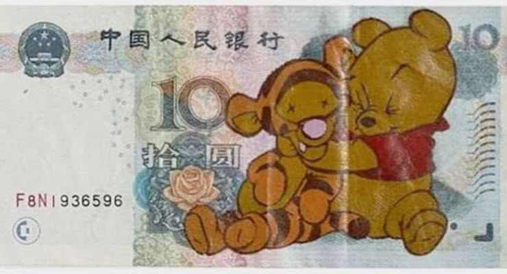 But one piece apparently went too far: it depicted Winnie the Pooh strangling Tigger on a Chinese banknote, an apparent reference to the treatment of the Uyghur minority in China. After complaints on social media, it was removed.