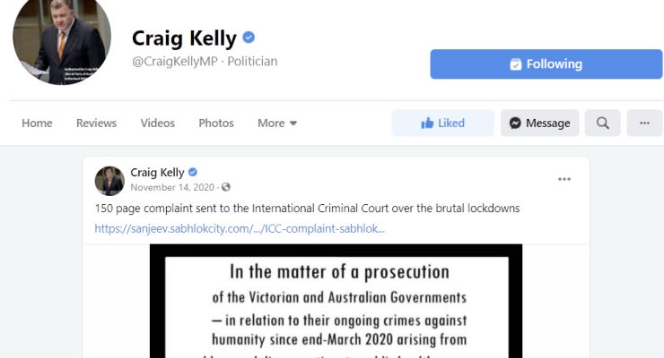 RIP Craig Kelly’s Facebook page, a source of bullshit that was taken far too late.