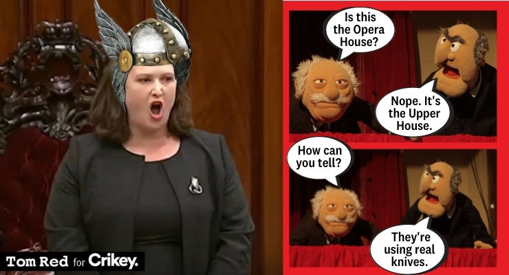 Barrelling along no doubt. There’s an excellent series of novels by Shane Maloney (?) referencing the Victorian Upper house as “the Red Morgue”. Lucky Queensland …