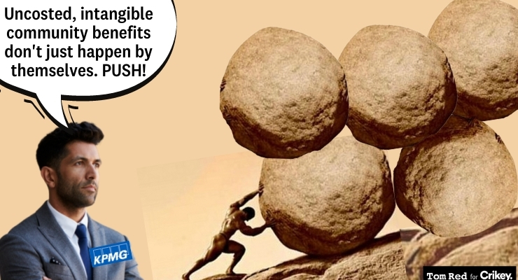 What about the economic disbenefits? Well, apparently they’ll be managed away: KPMG says they “are anticipated to be mitigated through a range of policies, mechanisms and interventions”. In any event, “delivery of the 2032 games will entail disbenefits in the form of economic opportunity costs associated with operations and legacy infrastructure. Preliminary analysis indicates that the economic and social benefits of hosting the 2032 Games outweigh the disbenefits”.