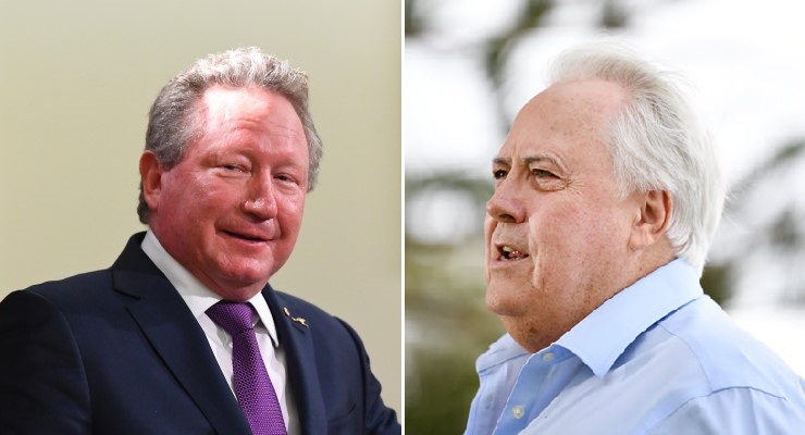 Forrest and Palmer are from our big resource-rich states: Palmer Queensland; Forrest Western Australia. But given their deep pockets and differing views on coal, their paths are bound to collide in central Queensland when a federal election is called.