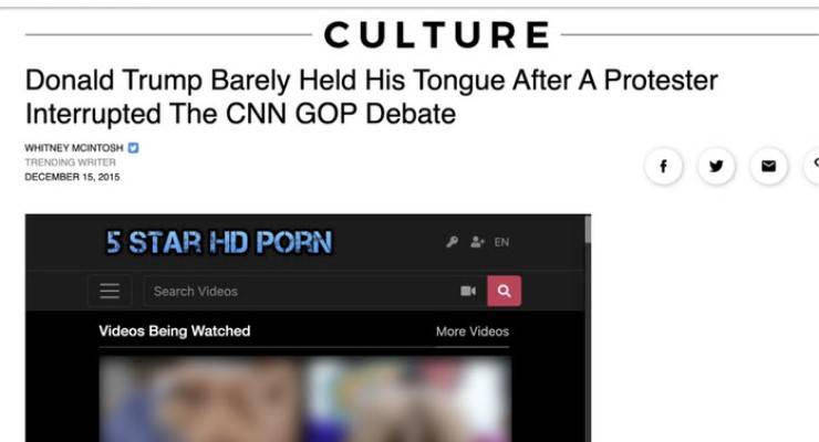 What happened next was that an enterprising porn company, “5 Star HD Porn”, bought that domain and rerouted things so that any website that had embedded a video from VidMe — like, say, highlights of soon-to-be president Donald Trump’s performance at an early Republican candidates debate — would instead show pornographic content from its website — such as “Naughty Spy Girls Part 2”.