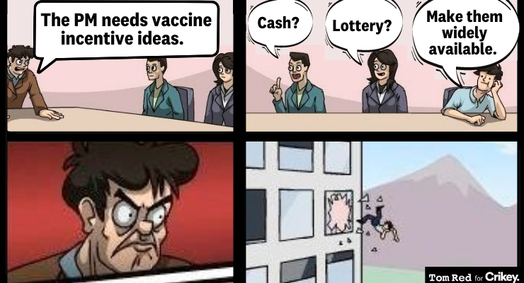 Perhaps they can get back the money given to businesses for “cashflow boost” and instead use it for a stimulus pay-out to taxpayers of a few thousand dollars each, provided they have been fully vaccinated.