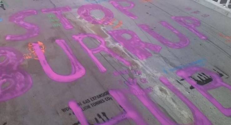The WA Police Commissioner was questioned about this on Perth ABC radio this morning – up went the shutters, with a ‘the courts will decide’ dismissal of such insignificant questioning, and an insistence that ‘property was damaged’. It was laughable when he claimed there are no political influences on police operations in WA. Just another illustration of how the WA government, whichever party is in office, is basically a branch office for Big Mining. They always get what they want, always have done since the 1890s. The mountains of anti-terrorism laws are just a new tool for achieving their ends, and disguising them with innocuous names like Graffiti Vandalism Act 2016 are just a standard part of Big Mining’s MO.