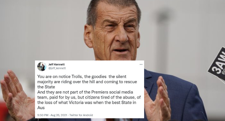 Unsurprisingly, the reign of current Premier Daniel “Dictator Dan” Andrews, has been a frequent topic for Kennett’s more… shall we say, florid, posting. After Andrews delayed announcing further easing of lockdown last October, Kennett got so upset he forgot how to spell the word throw (oh and how not to encourage widespread civil disobedience):