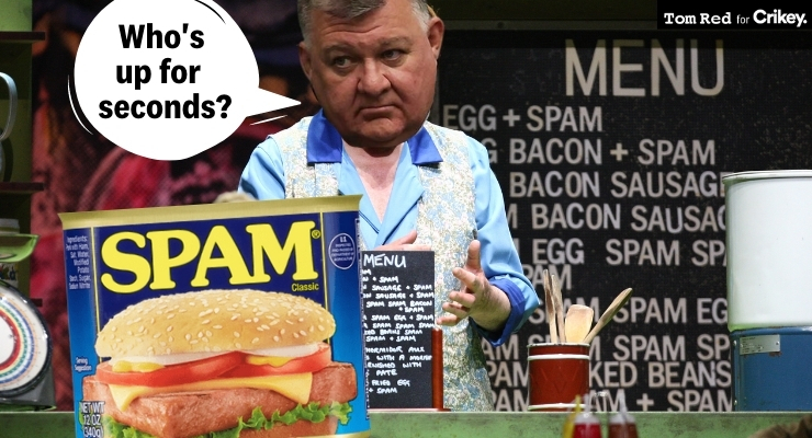 It’s the trademark name for compressed ‘SPiced hAM‘ – though it’s just boiled pork, nitrite and salt which is an apt description of Kelly.