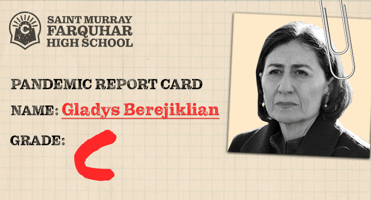 Golly Bernard, you’re a generous marker. Ruby Princess plus seeding outbreaks in other states leaked from NSW quarantine – has to be F. And F for the pathetic, pseudo lockdowns. And the only reason she gets a A for vaccinations is because she gets an A+ for interstate thievery. And the less said about blaming interstate colleagues for her own failings, the better.