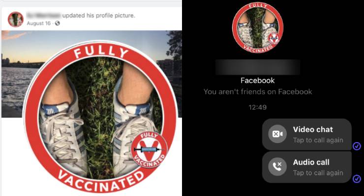 From this we can tell the Facebook account is active. On August 16, its profile picture was updated to add a profile frame — like a badge around the profile picture — saying “fully vaccinated”. (Bonhomme replied: “Me too ✅”).