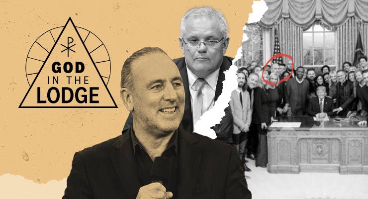 In 2019 Scott Morrison tried hard — and failed — to have his friend and mentor Pastor Brian Houston invited to an official White House dinner with Donald Trump. But within weeks, Houston went one better. He made it into the Oval Office where, a photograph records, he stood literally at the right hand of the president of the United States.