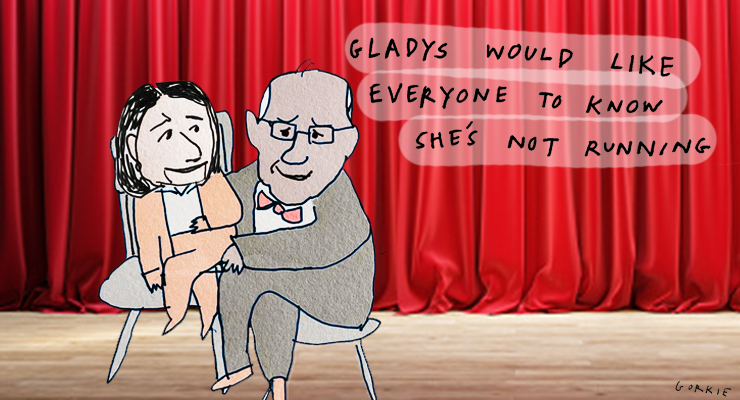 Yep. No doubt he’ll continue to do so. Now it’ll be “Gladys really wanted to run, but couldn’t because that dastardly kangaroo court ICAC stopped her.”