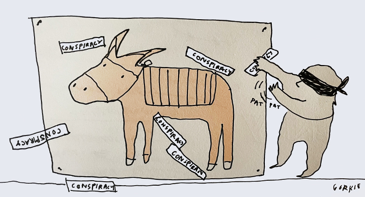 Much of the unproven or disproven assertions we call “conspiracy theories” are unworthy of the description “theories”. Academics Russell Muirhead and Nancy L Rosenblum call them “conspiracy without the theory”:
