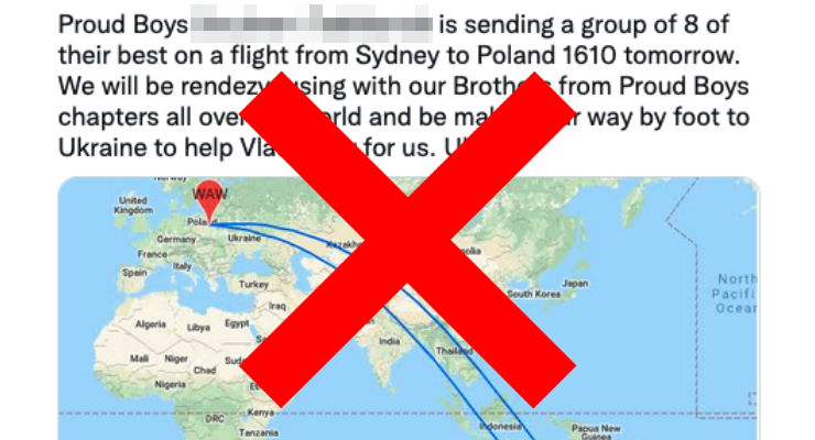 A trolling post from an Australian Proud Boys social media account pretending that they were flying overseas to fight alongside Russian troops in Ukraine has gone viral, amplifying the account’s false claims and helping them grow their audience.