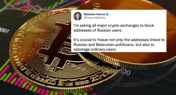 While some have turned to cryptocurrencies amid the Russia-Ukraine invasion, Ukraine’s Vice-Prime Minister Mykhailo Fedorov called for cryptocurrency exchanges — which are services used to buy and sell cryptocurrencies — to block Russian users, going beyond targeted sanctions to Russian individuals.
