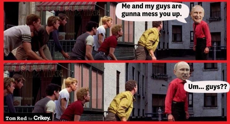 I note our prime minister, who is famously unsighted unless billionaires interests are involved, is cynically muttering supportive words for Ukraine and talking tough about standing up to bullies. A bit of pre election PR?
