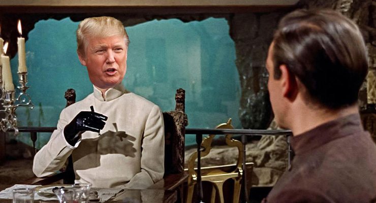 But he also came up with some new material. Most striking was the suggestion the US should put Chinese flags on its F-22s, “bomb the shit out of Russia … and then we say, China did it, we didn’t do it, China did it, and then they start fighting with each other and we sit back and watch”. Apart from sounding a bit war-crimey, you may recognise “bring about a major conflict by framing one world power for an attack on another” as a big element of at least three Bond villains’ world-domination plots.