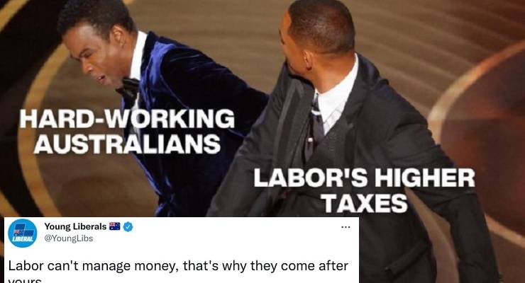 Funny how the party known to be the highest taxing are the ones trying to imply that it will be Labor that will tax ordinary workers the most. For the record, closing tax loopholes to ensure the very rich pay what they owe is *not* the same as being “high taxing”.