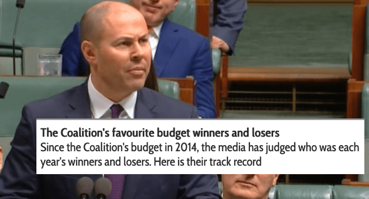 Using the ABC’s “federal budget winners and losers” pieces since 2014 — starting with Abbott and Hockey’s austerity budget all the way to Morrison and Frydenberg’s blatant attempt at voter bribing — I was able to see which groups appeared the most, and whether they were consistently winners or losers.