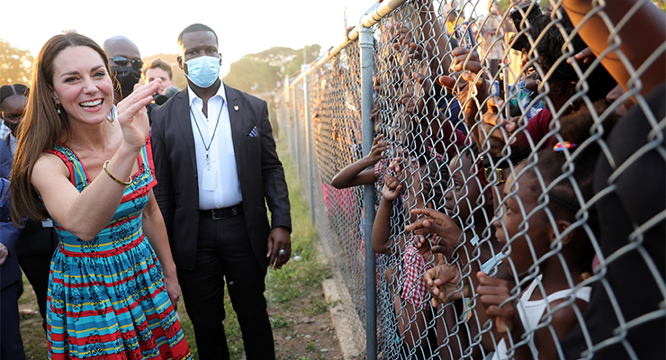 While the young royals had a chance to start healing the wounds of slavery caused by their ancestors who financially benefitted, they flubbed it. They flubbed it visually by the white saviour parody of the Land Rover escapade, and by having Kate parade around in stunning outfits that looked like they cost every penny of her £35,000 “budget”, which didn’t include the cost of the priceless jewellery she borrowed from the Queen.