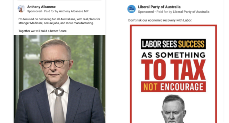 Meta’s Ad Library offers information about what Facebook advertisements are being run by pages, where they’re geographically targeted and at what demographics. An examination of both major parties’ advertisements since the federal budget on March 29 shows that Anthony Albanese is the major figure in post-budget Facebook advertisements from both parties’ Facebook pages.