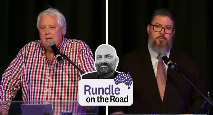Everyone had turned up on time for this Senate forum, staged by Voting Matters, a right-wing outfit hooked up in some way with conservative publisher Connor Court Publishing, but flying under a neutral flag. Labor and the Greens had declined the invite, and those who remained were a veritable bestiary of the right. They’d been on time for this Queensland Senate candidates forum, and Clive, who has his own jet, gets a hosanna for being 45 minutes late?