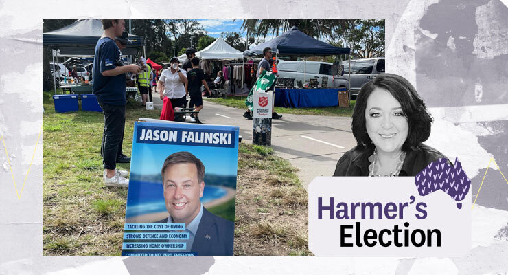 The election cosplay in the car park is everything you’d imagine. Liberal, independent, Greens and UAP in club colours — all jostling for hearts and minds. Prams and strollers with small kids. Even smaller dogs in arms. And everyone whispering: “How do you think it’s going?”