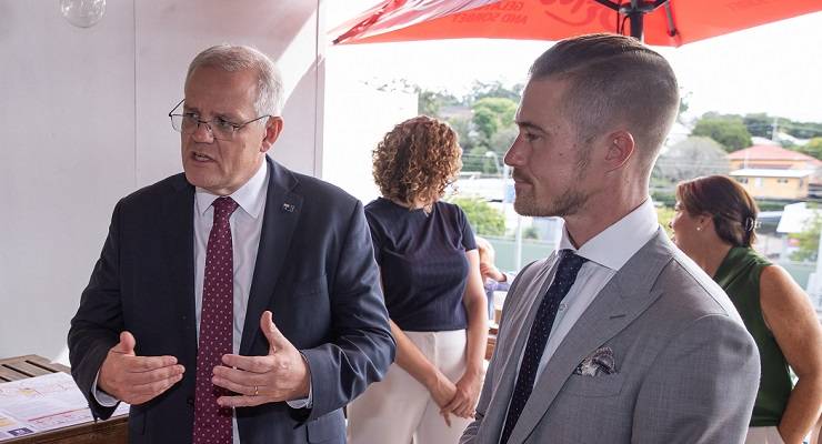 He also pointed out that the man joining him at today’s presser, Sam Biggins, LNP candidate for the Queensland marginal seat of Blair, could sing the praises of the policy because he comes from the real estate industry. I mean look at him.