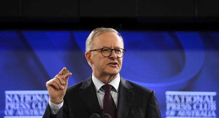 Anthony Albanese at the National Press Club today (Image: AAP/Lukas Coch)