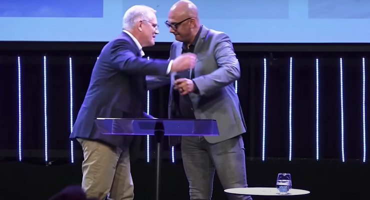 Yesterday was a day for Pentecostal royalty. Pastor Mike Murphy and his wife Pastor Valerie Murphy, the couple who “planted” the Horizon Church, were there for the prime ministerial send-off. Mike Murphy is chair of Alphacrucis College — the training college for Australia’s Pentecostal churches — and is a big wheel in the Pentecostal movement. Current Pastor Bonhomme is a director of the national Pentecostal body ACC (Australian Christian Churches).