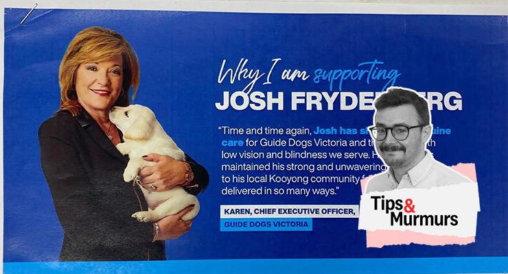 Hayesy days Farewell to Karen Hayes, who has resigned as CEO of Guide Dogs Victoria. This immediately follows the election, and her disastrous and controversial decision to appear in a flyer for former treasurer and departed member for Kooyong Josh Frydenberg, complete with cute puppy. Strange, it worked so well for National Lampoon.