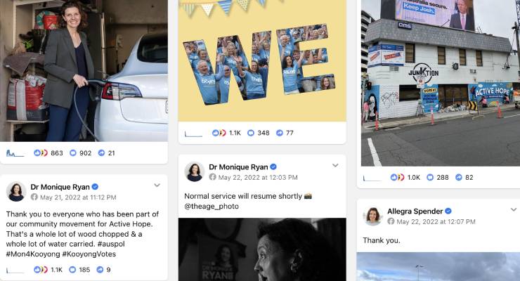Part of their online messaging was demonstrating the volunteer, grassroots support for their campaigns. Campaigns like Monique Ryan’s featured testimonials, even selfies, from volunteers and voters who were supporting the independents. According to Coper, this content performed extremely well online.