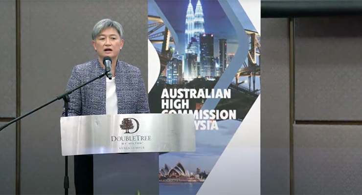 Penny Wong giving a keynote speech in the Malaysian capital Kuala Lumpur (Image: DFAT/YouTube)