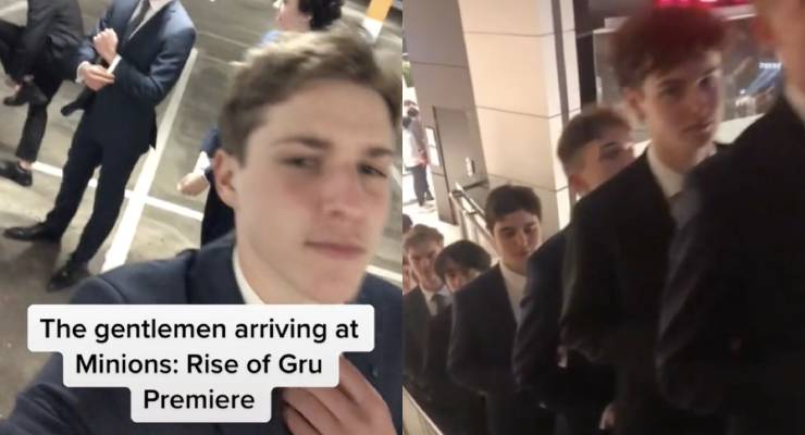 I don’t know how to ease you into the topic so I’m just going to say it: mobs of unruly teens inspired by viral TikToks are attending showings of the new Despicable Me film, Minions: The Rise of Gru, dressed in suits. Naturally, they call themselves the Gentleminions.