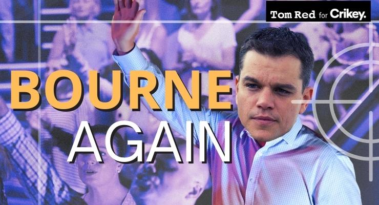 Our hero, Jason Bourne (Matt Damon) is found unconscious on the grounds of a Pentecostal mega-church in Pennant Hills, NSW. He has no memory of who he is, how he got there and why his clothes are caked in spicy Sri Lankan masala paste. Posing as the church’s new preacher, Jason uncovers a devious plot to tithe the incomes of all Australians, a conspiracy that stretches all the way to the middle tier of the Liberal Party.