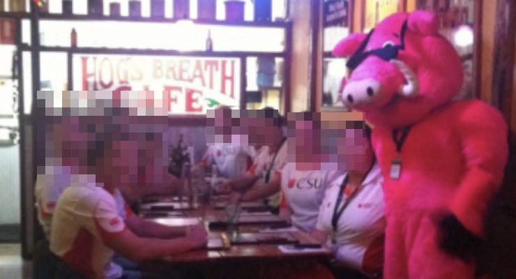 A recent innovation, however, has been restaurants swearing at me on social media. Such as an account purporting to belong to a regional Hog’s Breath Cafe which went viral for its crass posts implying that its mascot was a sex pest. From SmartCompany: “In late July, Instagram account @hogsbreathorange, presenting as the legitimate account for the Orange franchise of the steakhouse chain, began posting images with bizarre and politically pointed captions.