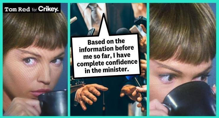 What they mean: “Dear God, please send a war or a flood or a fire or a Pauline Hanson ‘woke-gay-whales-forcing-vegan-vaccine-condoms-down-our-throats’ brain explosion. Anything to get this fiasco off the front page.”