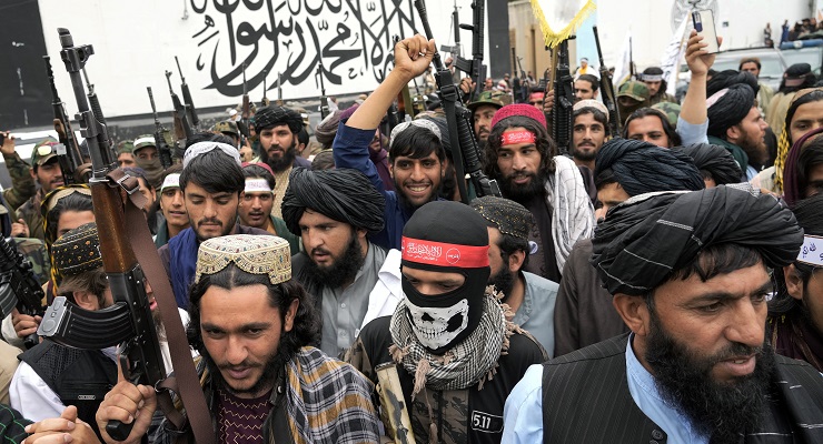 Taliban fighters celebrate one year since they seized Kabul (Image: AP/Ebrahim Noroozi)