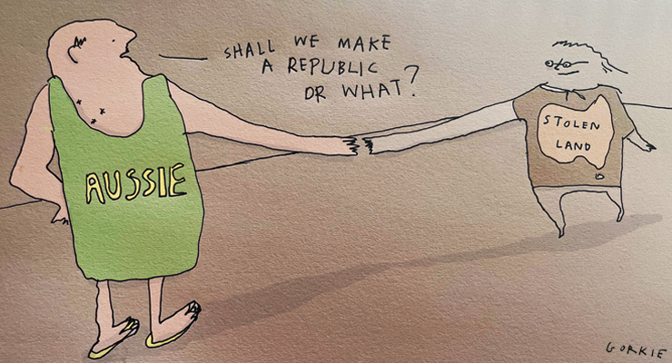 Indeed, it is the exact opposite of all these things. Australian republicanism appeals to a common identity and a universal condition, as Australian. But many of the people who believe in that most fervently are monarchists; conversely, many of the people who would prefer us to be a republic believe that the notion of unity is a false one, covering over the fundamental divide of colonialism.