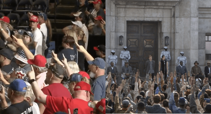 Over the weekend, a certain part of the internet was awash with some eerie footage. At a rally in Ohio for Republican Senate nominee JD Vance, former US president (and future presidential hopeful) Donald Trump spoke to dramatic background music while his supporters raised their hands in a straight-armed, one-fingered salute.