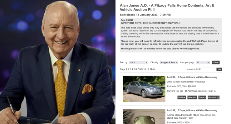Following the sale of his Southern Highlands estate, the former king of talkback radio Alan Jones is auctioning off the property’s contents.