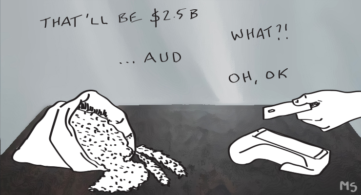 Huge elephant in the room here surely, no mention of climate destroying mega exports of coal and gas? This article perpetuates the dangerous illusion that growth is unconditionally good. And why is it not shareable Crikey?