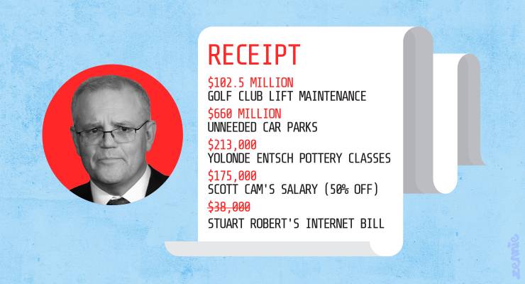 It got us thinking: what was the total bill of spending under the Morrison government that trailed a faintly dodgy scent? Let’s punch the numbers in.