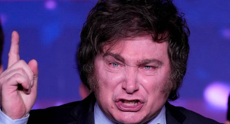 A radical libertarian economist with hair that recalls murder trial era Phil Spector on a relatively quiet day, Milei had achieved notoriety on the talk-show circuit in his home country over the past few years, as much for his work as a tantric sex coach as for his right-wing theories of economics. He eventually founded the Liberty Advances party and parlayed his celebrity into a seat in the lower house of congress in 2021.