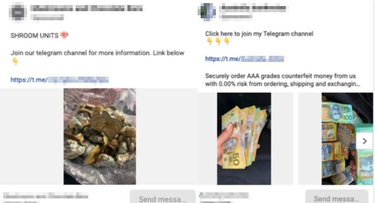If you go on Facebook, Instagram or Messenger, you might come across advertisements selling illegal drugs, counterfeit Australian banknotes, cloned credit cards, guns or, in one case, a monkey.