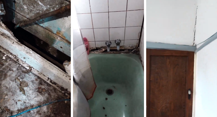 In what van den Berg suggested “might be the worst one I’ve seen”, a review of a house in Melbourne’s Brunswick contained images of bright yellow mushrooms sprouting between floor tiles. Walls appeared cracked, peeling and mouldy. The reviewer described, “power constantly tripping and unsafe, wiring everywhere and was only dealt with because housemate was electrician … Big chunks of roof fallen down in bedrooms … Real estate essentially unresponsive … And of course now they are wanting to take our bond”.