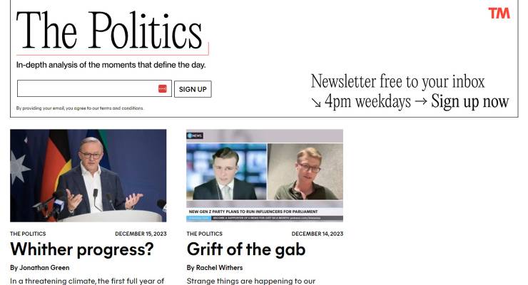 Williams added that The Monthly team was “extremely proud of the following that has built up for The Politics, and its deserved reputation as a place for smart, engaged daily political content and will be keen readers of it in its new standalone form”.
